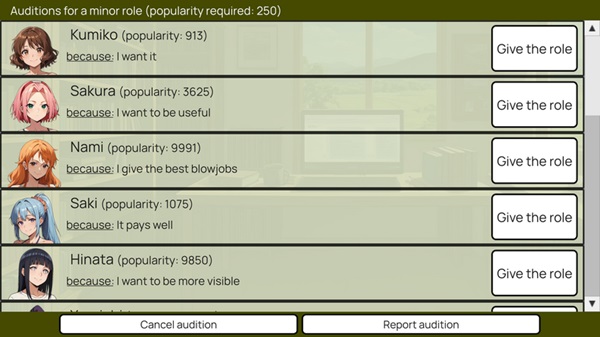 As popularity rises and skills increase, new professional connections become available. Better stats make certain auditions easier, unlock higher paying contracts and open up more advanced scenes. The progression system is steady and rewarding, giving players a sense of tangible improvement.
