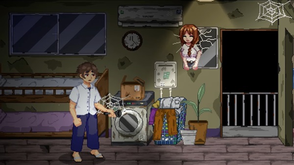 No Exit Apartment begins with a simple, relatable setup. A young man is caught in a heavy rainstorm and runs into an old apartment building to take shelter. At first, nothing seems unusual. The hallways are quiet, the lights are dim, and everything feels abandoned.