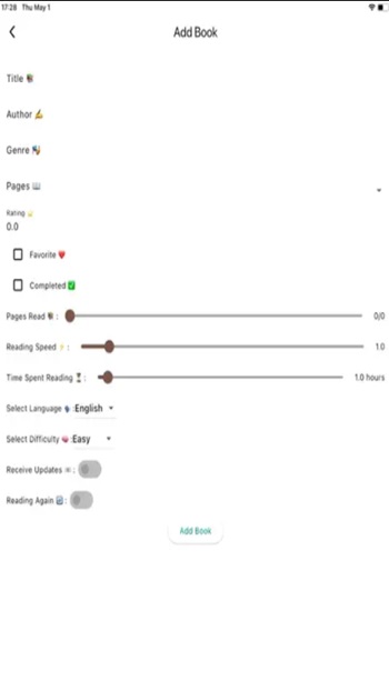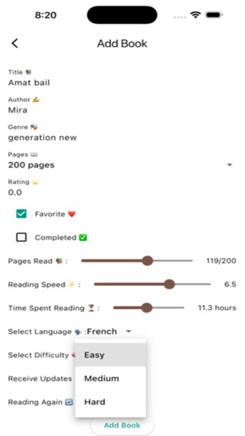 Você pode adicionar quantos livros quiser à sua biblioteca pessoal. É possível inserir o título, número de páginas, progresso atual e outras informações relevantes. O gerenciamento é simples e direto: com poucos toques, você edita ou exclui qualquer item da lista.