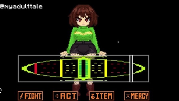 In Undertale, Chara’s presence was mostly hidden, appearing only when the player chose the most destructive path. Adulttale flips this dynamic. Chara is no longer just a shadow but an ever present voice guiding, questioning, and pressuring you. This direct interaction makes her character far more complex.