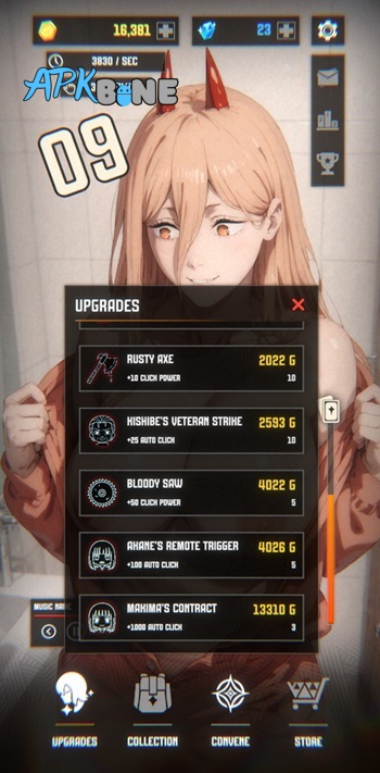 Chainsaw Man Gacha Clicker Game focuses on growth through action and choice. Every tap represents an attack and every enemy defeated provides blood which acts as the main resource. This resource fuels almost every system in the game from upgrades to gacha pulls and story progression.