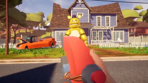 In the original game, the Neighbor is suspicious, strange, and dangerous, but his behavior still feels somewhat human. In Hello Neighbor Fredbear APK, that line is erased.