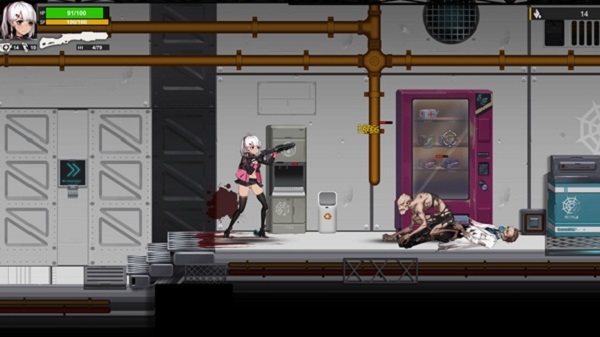 The game offers side-scrolling 2D survival action with real-time combat, mission-based progression, weapon customization, and atmospheric horror elements.